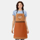 Modern "powered by plants" heart food doodle apron in medium and dark burnt orange colour. Personalise with your name. Perfect as gift for vegan girls.