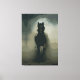A majestic black stallion charges forward through a cloud of dust, symbolising freedom and raw power. This dynamic silhouette contrasts beautifully with a muted background, creating a bold and captivating scene for art lovers and equestrian enthusiasts alike.