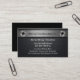 Modern construction business card template with image of a simulated metallic name banner with two fasteners to the top highlighting your company name or brand and carbon fibre style cool background art designed for a builder,  remodeling or construction service.