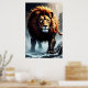 This product is a stunning canvas print of a powerful lion walking over water. The image captures the majestic beauty and strength of the lion, as well as the dynamic movement of the water. This product is perfect for anyone who loves tigers, wildlife, or nature in general.