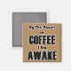 By the power of coffee I am awake! Funny text design about your love for always helpful coffee.