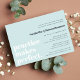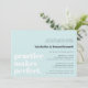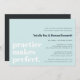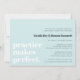 Our modern, humourous wedding rehearsal dinner or cocktail party invitations feature "practice makes perfect" in white retro lettering on a pale sea green aqua background. Personalise with your ceremony rehearsal and rehearsal dinner details aligned at the right. Includes space for the rehearsal timing and church or venue address. A chic design for modern couples and elegant events with a tongue in cheek sense of humour.
