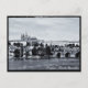 Postcard: Prague - view on a historical part of the city over the Vltava river, with dominant St. Vitus Cathedral on the hill, bribed by "Hradcany" - Prague Castle in black and white. Historical buildings on the river banks, where Prague Zoo is situated. Travel/Architecture series - Prague, Czech Republic. Original Photography/Art/Design by work4dream.
