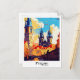 Prague Czech Art Vintage Travel Illustration Postcard