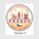 Prague minimalist, colourful art design featuring monuments and landmarks of the city in Czech Republic.
