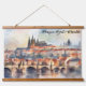 Colourful and beautiful Prague Czech Republic Wood Topped Wall Tapestry featuring a watercolor artwork of the czech capital with its cityscape and famous landmarks. Great souvenir and gift idea for every tourist.