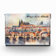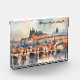 Colourful and beautiful Prague Czech Republic Photo Block featuring a watercolor artwork of the czech capital with its cityscape and famous landmarks. Great souvenir and gift idea for every tourist.