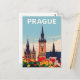 A charming, retro-style illustration capturing the iconic skyline of Prague's Old Town Square, Czech Republic. Features the historic astronomical clock tower and surrounding Gothic architecture, set against a bright sky and vibrant foreground of red and yellow tulips. This stylish vintage poster art is perfect for travel lovers, home decor, or as a unique gift for someone who cherishes the beauty of Czechia.