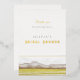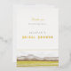 Bridal Shower Thank You Card with Nature mountain country landscape. Softness Nature landscape spring green prairies in bloom. Silhouettes of brown rocky mountains, grass field and white dandelion flowers. Watercolor painting background Bridal Shower Thank You Card. Prairies in Bloom Collection.