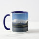 Begin your day with praise on your lips! Mug with the first four lines of Psalm 148 and a scene of mountains and clouds.