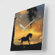 Prancing Horse with Sunset and Oak Tree Nature Square Wall Clock