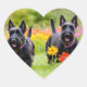 Prancing Scottish Terriers in grass and flowers Heart Sticker