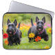 Prancing Scottish Terriers in grass and flowers Laptop Sleeve