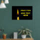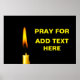 Burning wax candle of yellow colour against black background and a text Pray For ADD TEXT HERE. You can add your own text. To express sympathies. Poster.