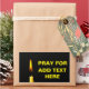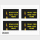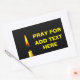 Burning wax candle of yellow colour against black background and a text Pray For ADD TEXT HERE. You can add your own text. To express sympathies. Rectangle sticker