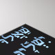 Striking original digital painting by Leslie Sigal Javorek. On a black background is a vibrantly coloured globe representing Jerusalem; behind it is a copy of the 1917 document wherein Lord Balfor declared Palestine a sovereign nation and homeland for the Jewish people. The royal blue Hebrew text spells 'Shalom' (peace); text in lower left is an English translation of the top right Hebrew.