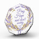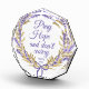This Christian photo block has an elegant purple floral wreath with bow and an inspirational Saint Padre Pio quote: Pray Hope and don't worry.
