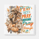 Peaceful, colourful design featuring a fall / autumn scene with majestic lion head, pumpkins and fall flowers. The colourful inspirational text reads: "Pray on it, pray over it, pray through it". This design is available on a wide variety of products.