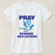 PRAY, this Christian design features a beautiful blue dove and text saying "Pray, because God Listens".
