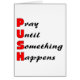 PUSH, Pray until something happens. A great Christian saying that means a lot. This design is made up od big bold letters with the word PUSH. Pray until something happens is written in black script. Image is property of Diligent Heart