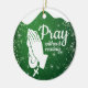 Pray without ceasing, Religious Holiday Ceramic Ornament with green sparkle glistening, Praying hands capturing the Christmas magic and joy of a Christian season. On the back, the sacred writing, Matthew 6:10 "Thy kingdom come. Thy will be done in earth, as it is in heaven" all in customizable text, ready for you create your favorite bible verse in a festive devotional design hanging decorations. Order your Christ teachings testaments today and make your custom inspirational doctrine keepsakes extra special with divine passages of the word of our Lord! 🎄⛪️