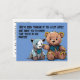 This postcard features an endearing illustration of a charming teddy bear and a gentle lamb depicted in intricate inked lines. The teddy bear, with its soft fur and friendly smile, sits snugly beside the lamb, which exudes a serene calmness. The artwork captures a sense of innocence and warmth, making it a delightful sight to behold.
