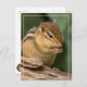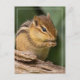 A cute chipmunk is posed as if in prayer on a fallen tree branch.