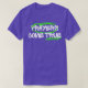 I give wanted to give this a 4 instead of a 5 because these Basic DARK T0shirts run unexpectedly SLIM or Narrow. Which is great if you do not have a potbelly, but I have a paunch. It isn't the shirt's fault that I've got a beer belly. The design and shirt itself is a quality cotton shirt. The color is more of a deep purple, but still a very pretty color. The Basic DARK T-shirts run a bit SLIMMER than the Basic Ts. The neck is a fraction narrower (or seems to be narrower) also. I'm a paunchy middle-aged woman and my neck is 12 inches (31cm) thick and the neckline fell about the same as in the photo of the man, and I had the desire to tug it a bit. So if you're a thick necked man or like loose shirts, be aware these are slimmer shirts. Once I get rid of my lockdown paunch it'll look great. The shirt washed well in cold water with no apparent bleeding. We don't have a dryer, so it hung dry. Did not shrink. Love the colors and the design. The design looks smaller on my shirt than it does on the model on-line. But still, it looks good on the shirt. The printing looks as it does on the model, just the size seems fractionally smaller. Washed garment in cold water, hung dry and design appeared unaffected.