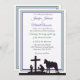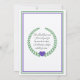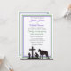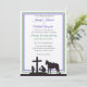 Black silhouettes of a bride and her cowboy groom praying at the Cross along with his faithful steed. There is the background of the invitation is white with a purple and green trim around the text area. There is customisable text in grey, purple and green font where you can add all of your wedding day information. The reverse side of the praying bride and cowboy groom invitation has the same solid white background with the purple and green trim. There is a wreath of green leaves with a purple heart at the bottom. Inside of the wreath is text in grey script font with scripture from Genesis 2:18. The Lord God said, “It is not good for the man to be alone. I will make a helper suitable for him.”.