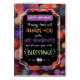 Wish someone a happy birthday with this unique hand lettering typography style card, featuring the message, "Happy Birthday! Praying God will Amaze you with His goodness and fill your year with blessings!" Design appears on colourful watercolor circles pattern and includes type accents and flourishes.