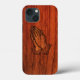 Beautiful Christian mahogany wood texture with praying hands phone case.
