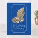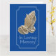 A plain, elegant and meaningful design of faux copper praying hands with a faded look set against a dark blue coloured background. The hands are framed by a thin white vertical scallop frame and the words "In loving memory" appear below the hands. Personalise the colour of the background and change the wording and poem to any of your personal choice. Suited to both men and women.