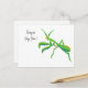 This postcard features a painted illustration of a praying mantis in bright green with orange accents and is ready to be customised with your own message on the front. The back of this card is blank for you to write in your own message.
