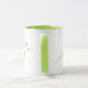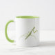Painting of a Praying Mantis by Cheryl Paton, is printed on two sides of custom mugs. The background colour can be customised. The praying mantis is a large green insect.