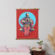 Stylish wall tapestry features praying Monk graphic novel style illustration on red background