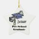 All mothers are excited when one of their children graduate. This ornament displays a cap and diploma along with the words, "Pre-school Graduate" printed in black. It is customisable to make sure the little one gets the recognition with their name. The backside shows ABC blocks and has the year that is also customisable.