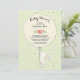 Cute bunny rabbit holding a big balloon set on a green floral background for a neutral baby shower for a baby girl or baby boy. Visit our shop to view this invite in a variety of colours.