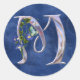 A fancy curled monogram "M" textured in multicolor metal with blue morning glories winding around the left of the initial, and a colourful blue butterly flying in to land on the flowers. This beautiful and elegant design is the perfect gift for all flower and butterfly lovers!