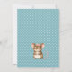 This beautiful baby shower invitation features a fox, two mice, a bunny,, sleeping bear, a deer and little bird who's sitting in the tree. The animals are all wearing floral headbands to the baby shower! The background is pale green with a darker green lettering. An easy to use template is provided for you to enter all of your personal baby shower information. The back side of the invitation has a darker green and white polka dots pattern and another little mouse with a floral headband.