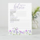 Predictions and Advice sheet to suit wildflower baby shower, girl or summer floral theme. Fun activity to involve guests at your baby shower, with words of wisdom for the parents to be. Delicate and feminine botanical design is hand lettered with "advice" in elegant script calligraphy. It has a pretty border of watercolor wild flowers in shades of lilac, lavender, purple, pink and blue. A dainty modern floral with girly, bohemian cottage garden theme. Please see my Purple Wildflower collection for matching items or, message me to create the templates you need.
