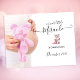 Picture your photo in this sweet, little miracle pregnancy announcement for a baby girl. Upload your photo and add your arrival due date. Templates are provided for you. Text has "a sweet little Miracle is Coming Soon". Cute teddy bear toy with pink blanket in middle of announcement.