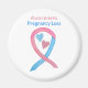 Pregnancy Loss uses a pink and blue ribbon to support awareness for its cause. The custom magnet features an awareness ribbon heart art magnet with the message "Pregnancy Loss Awareness". The NIH defines pregnancy loss as "when a pregnancy ends unexpectedly before the 20th week. It is sometimes called early pregnancy loss, mid-trimester pregnancy loss, miscarriage, spontaneous abortion, or foetal demise." The NIH states "stillbirth refers to the death of a foetus at or after the 20th week of pregnancy."