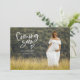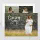 Stylish pregnancy announcement card featuring an overlay script text that says "coming soon" with a heart. You can add 3 photos on this card (front and back).