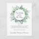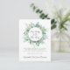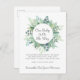 An elegant pregnancy announcement with a lovely watercolor floral frame with eucalyptus leaves greenery and a modern trendy script typeface.