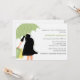 Stylish Baby Shower invites feature a beautiful vector illustration of a pregnant mum holding a polka dot pattern umbrella and two gift bags.