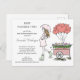 Whimsical illustrated pregnant mum painted pink baby sprinkle baby shower with pink balloons and mum with umbrella and rain boot galoshes. A baby shower invite for your 2nd baby's arrival.