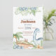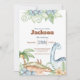 Adorable prehistoric animals with palm trees and blue flower arrangements