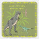 A terrific coordinating sticker for a dinosaur party! It features three prehistoric creatures against a palm background. Well-suited for either gender. (Vecteezy.com dinosaurs by freevector, palms shilhouettes by freevector). The sticker is easy to customise with your wording, font and font colour.