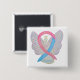 Premature Birth awareness cause uses a pink and blue ribbon. The awareness ribbon pin features the painting of a pink and blue awareness ribbon angel on a custom button pendant. The awareness angel pendant notes "Premature Birth Awareness". The pink and blue awareness angel ribbon art lapel pins or buttons can be customised with personalised messages to make great cause buttons for fundraiser pendants, awareness pin gifts, or other special pendant events or awareness lapel pin for the cause's occasions.
