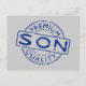 A great gift idea from TeesForYourFamily.com! This cute stamp-style design makes it official -- this son is Premium Quality! Done in a inky blue colour that's been distressed for a vintage look, this original design is the perfect unique gift idea for doting parents of sons and their premium top notch quality boy children! You can totally customise this gift! Move the stamp around, change the background colour or style, add your own text or images -- make it your own!